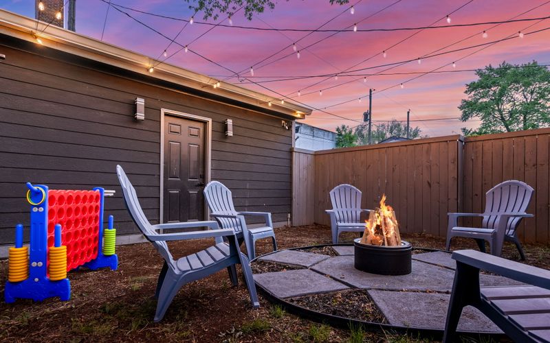-Backyard with wood-burning fire pit, BBQ grill, Giant Connect 4, and ring toss